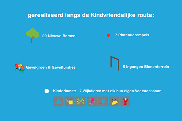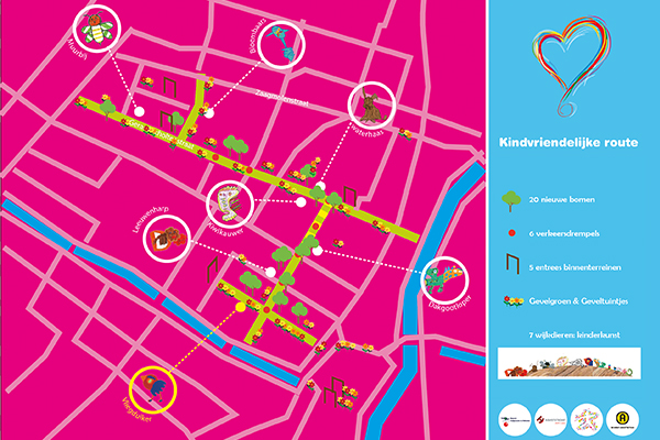 Using various themes, a child-friendly route was developed for the borough. This approach involved an integral and proactive collaboration between borough council, housing corporations and local residents to improve the areaās public space and liveability.
