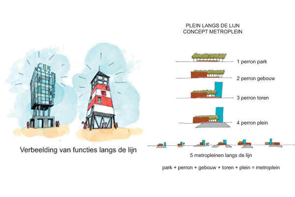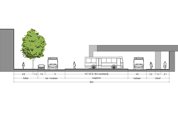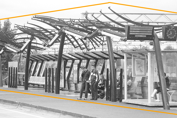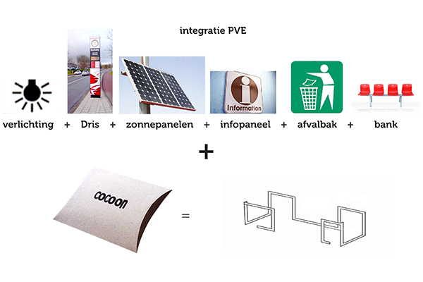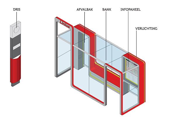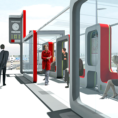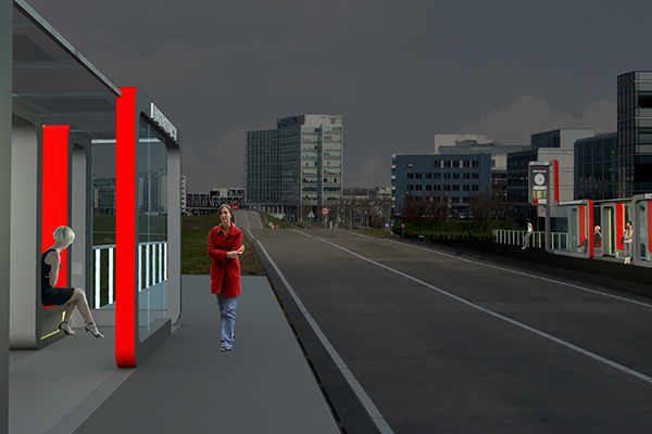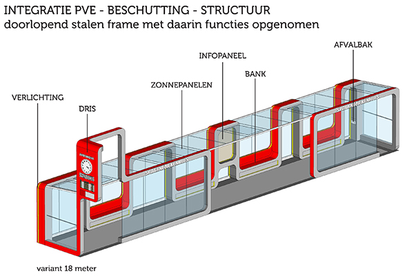 To replace the existing shelters along the Zuidtangent, a new shelter design has been developed, which, based on a simple continuous steel frame, comprises all the relevant functions that are relevant for travellers, such as shelter, information and comfort.