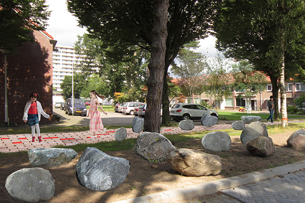 The Wilgenplantsoen is a wide-open, brick-covered square in the centre of Rotterdam Noord. There were few options for play and encounters.