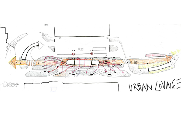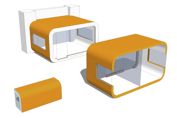 The 15 shelters along the core trajectory can be adapted to two sizes. The smaller size was developed specifically for inner-city locations. Befitting the design and the zeitgeist, the element is designed to be energy neutral.