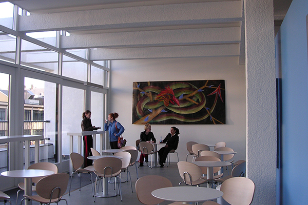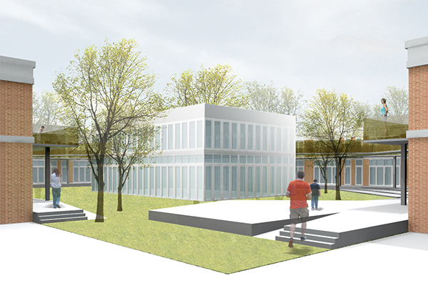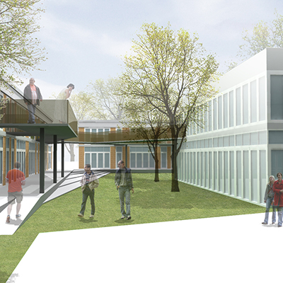 The roof of the teaching building of the SKVR now hosts, in combination with an adjoining building, a new canteen.