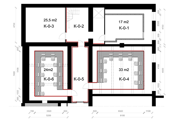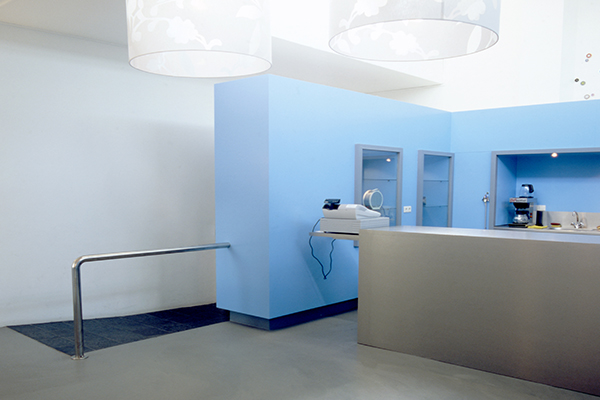 In the end we have opted for a light and thin construction inserted into the existing one, which, because of the distance to the actual walls, complies with all noise absorption requirements while also allowing for easy access for inspection.