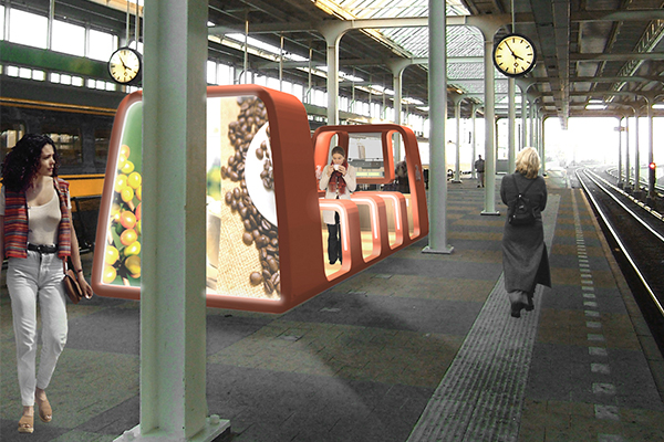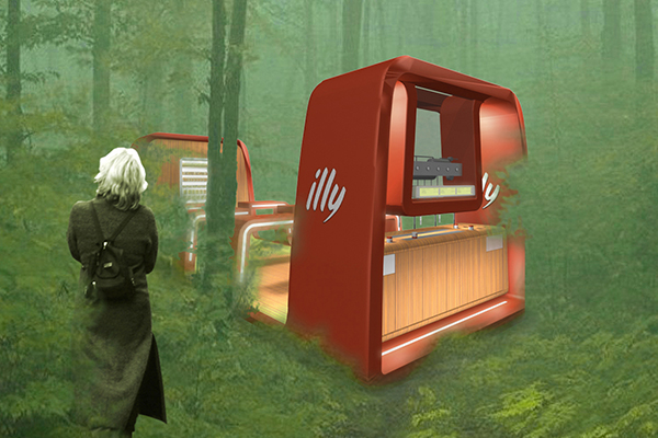 Our design proposal comprised a clear recognisable object that combined characteristics of a vending machine and a small cafe. Our design is suitable for contemporary people, who, among the ever-increasing speed of life, long for a calm spot, a good cup of coffee and some Italian sweets.