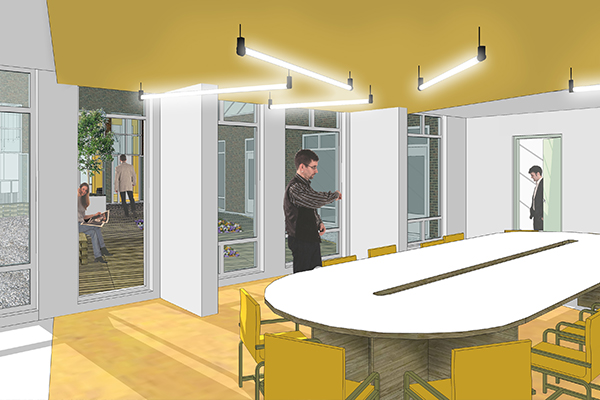 IThe first and second floor of this striking building were developed into office spaces for several collaborating parties in the care sector.