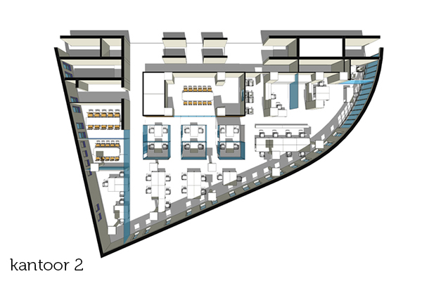 A new office layout for the former offices of the Haagse Courant (18,000 m2), which date from the late 1980s, was proposed.