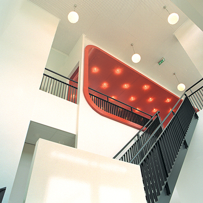 The idea was that within the structure of the existing building, a mix of private offices, open work areas, and shared facilities would be realised. The same approach was taken with the tower, which is highly visible from the motorway.