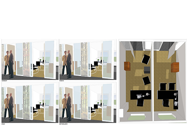 Each of the parties is able to retain their own identity, while their commonality has become and integrated part of the working environment. The office spaces have been designed in a transparent way, while both floors are interconnected spatially by way of a vide.