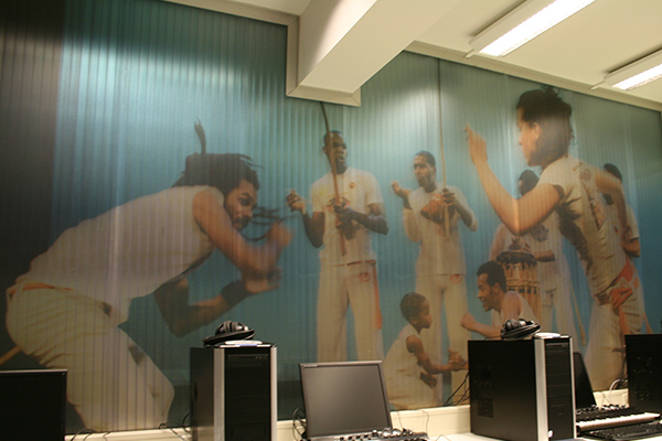 The panels used are covered with photographs of the SKVR, highlighting their own work and the fun their students have.