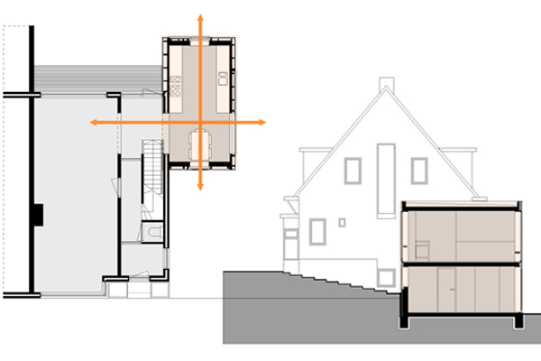 The stylistic principles applied are simple: a clear structure, plenty of daylight and modern materials. The area that contains the stairs functions as a structural element between the existing house and the extension.