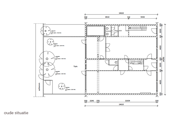 The entrance area at the front has been given greater depth, and as a result, the former basement has become a fully-fledged floor. The new entrance, with a spacious vide, has thus become possible without loss of effective floor space.