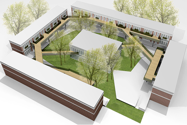 The first floor would have two connecting routes: this would enhance the private character of the courtyard and allow for more liveliness to occur.