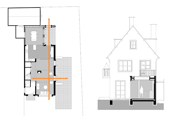 Following the refurbishment, the house's ground floor has been opened up, and a new extension has been added. The result is a house with pleasant vistas and a beautiful outside space.