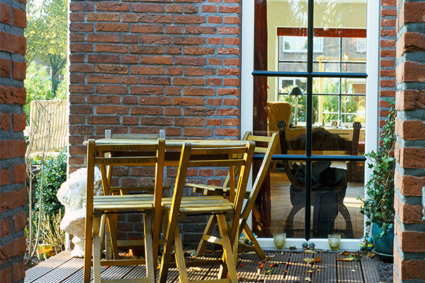 Through the use of wood and additional details a softer image has been created on the garden side.